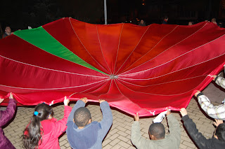 ¿Cómo? con una humilde castañada, compartiendola con todo el mundo que quiso festejarlo con nosotros y con una tarde agradable de juegos, amén del tiempo frío , ya que el invierno llegó la misma tarde que jugábamos en el Parque Magallanes.