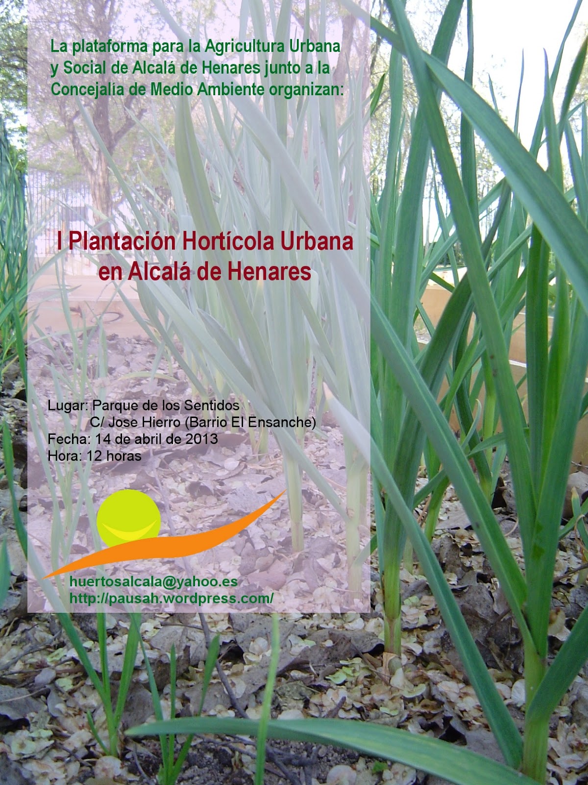El día 14 de abril la Plataforma para la Agricultura Urbana Social de Alcalá de Henares (PAUSAH), en colaboración con la concejalía de Medio Ambiente, llevará a cabo la Primera Plantación Hortícola Urbana en Alcalá de Henares. Esta actividad consistirá en la puesta en marcha de un espacio dedicado a cultivos de huerta en el Parque de los Sentidos.